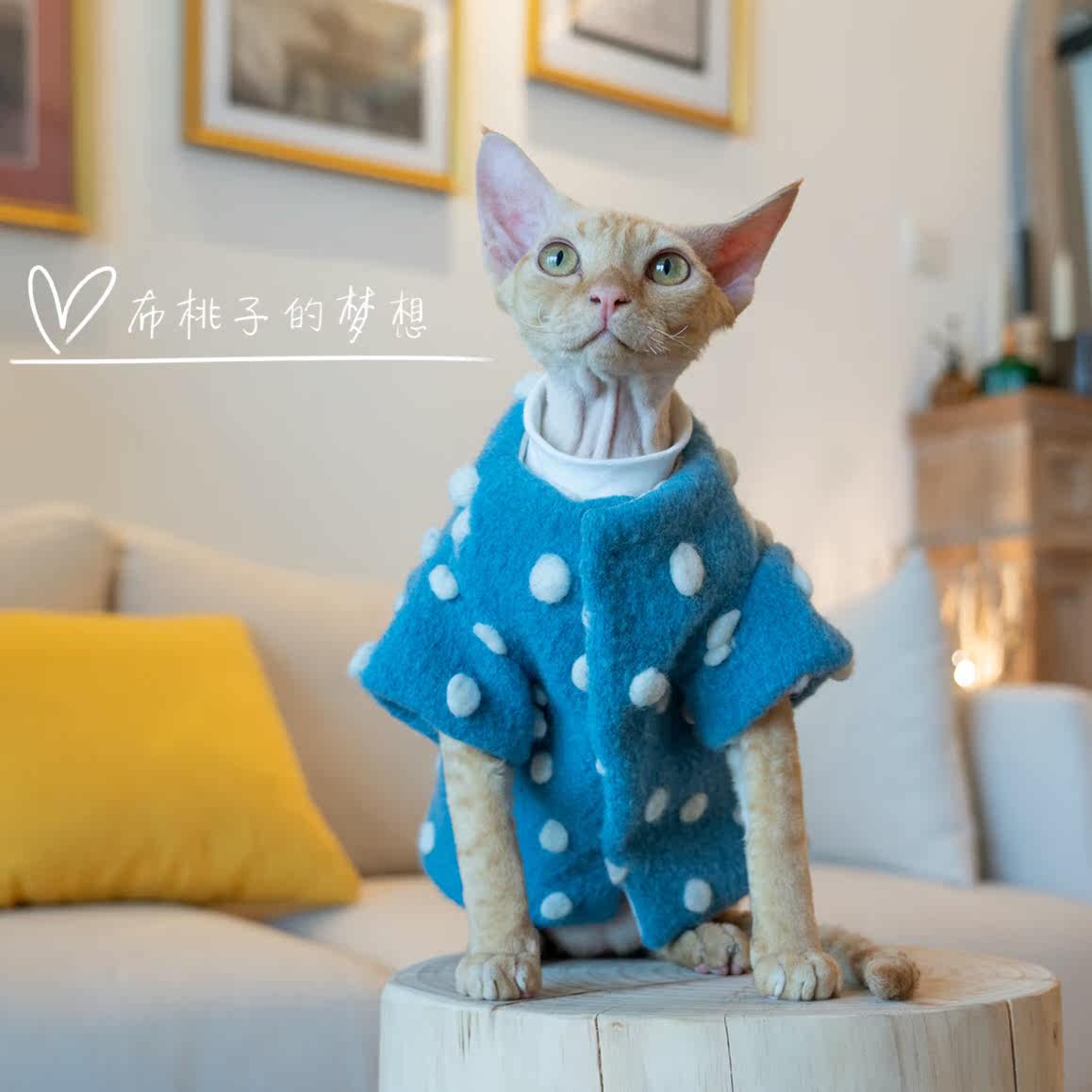 GINGERAIN HAIRLESS CAT DEVON CLOTHES SPHINX HIGH-end JACQUARD cashmere WOOL COAT