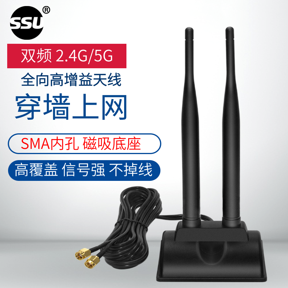 SSU 2.4G 5G Dual Band Antenna 6DB Omnidirectional High Gain Extension Antenna Wireless Network Card Antenna WIFI Router Antenna with Magnetic Base with Extension Cable 2m SMA Internal Hole