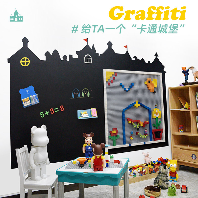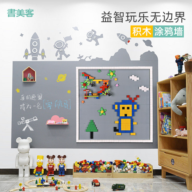 Book Meike building blocks graffiti blackboard wall Baby blackboard wall Home children's room sticker wall hanging magnetic dust-free creative wall toy building blocks wall compatible with LEGO