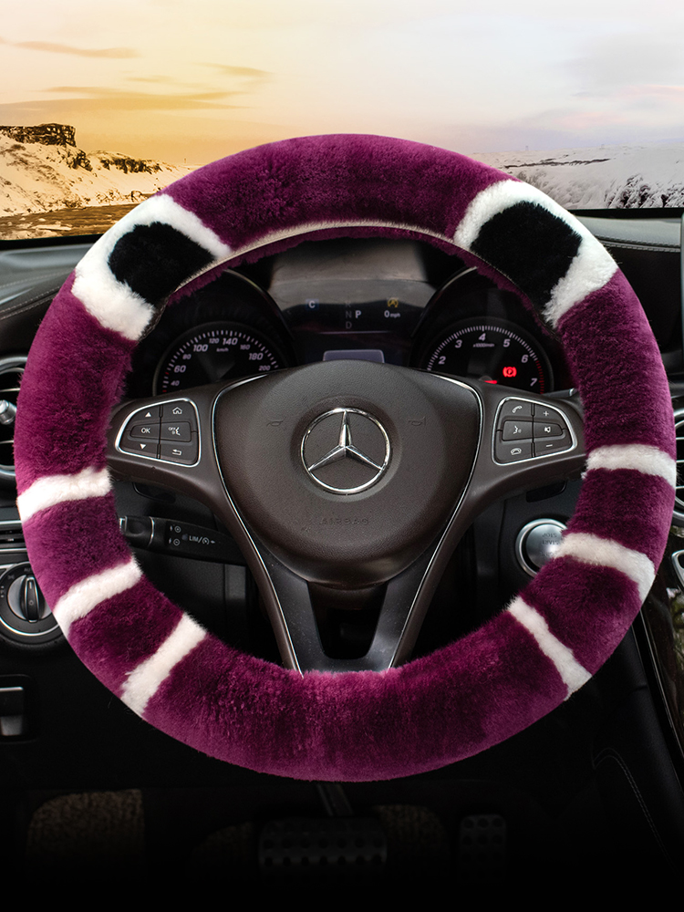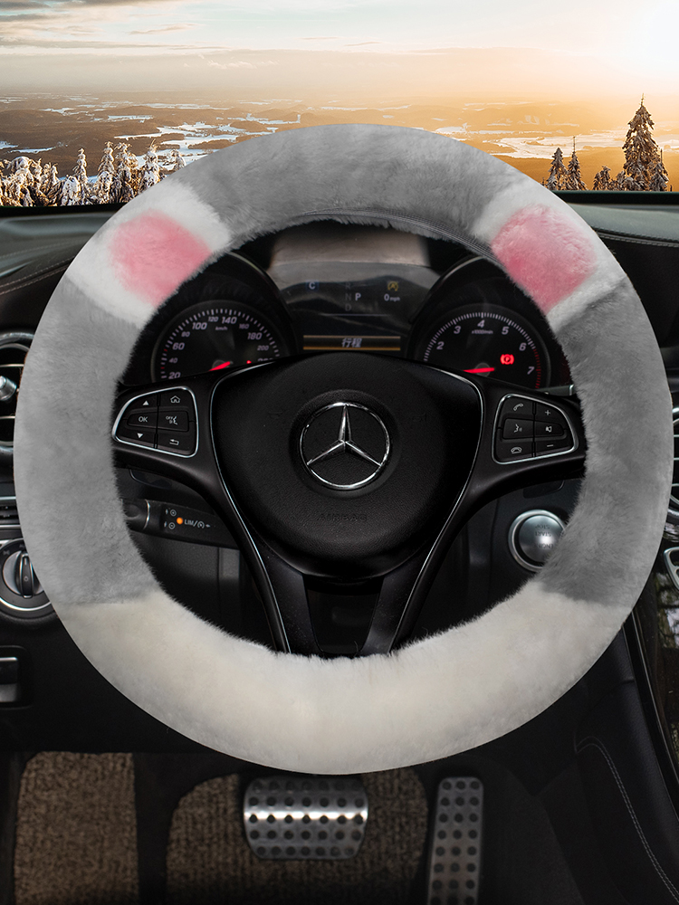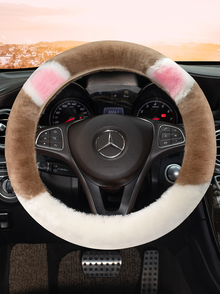 Pure wool car handle cover winter short plush steering wheel cover universal cute cartoon female winter warm handle cover