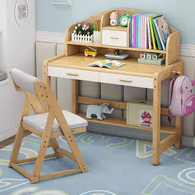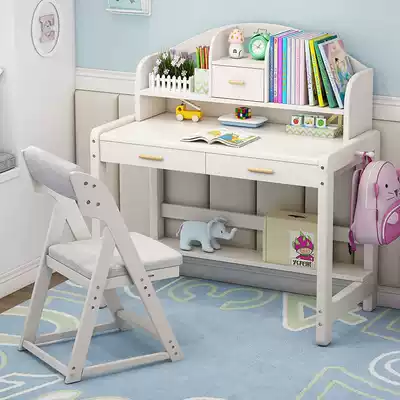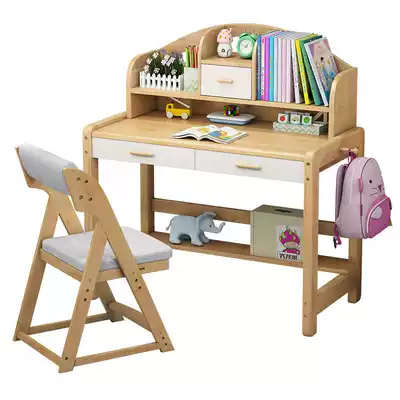 Lifting children's solid wood desk bookshelf combination pink girl learning table simple home primary and secondary school students desk