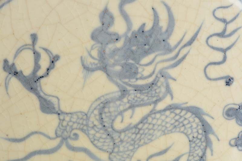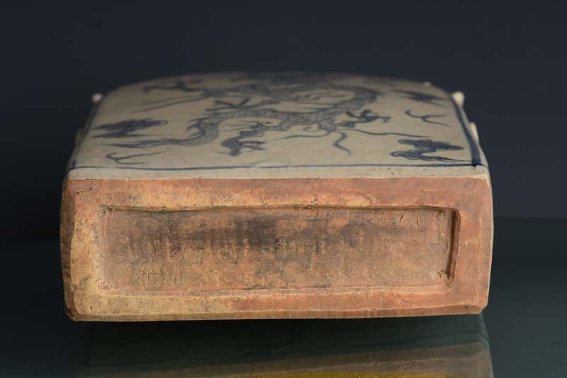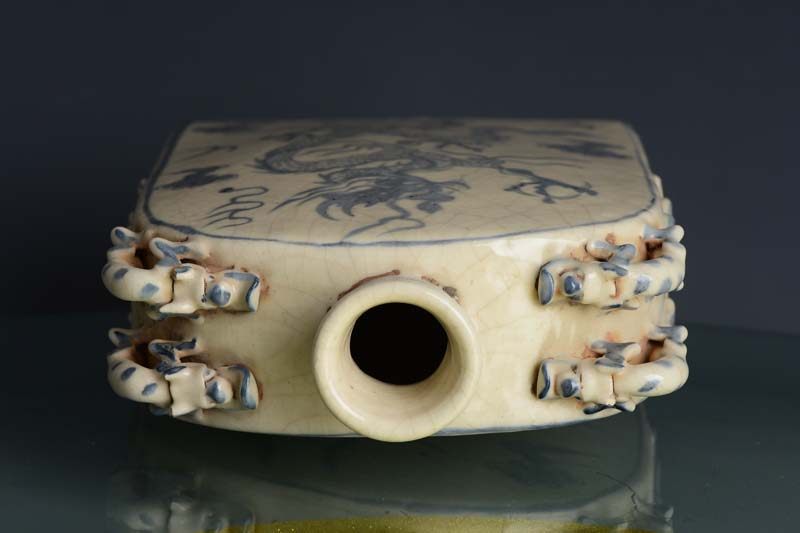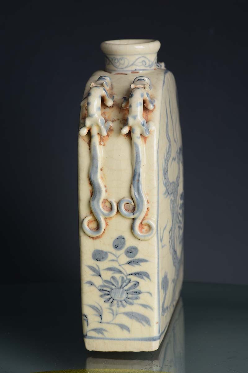 Yuan blue and white square flat vase with four tigers, tigers, clouds and dragons
