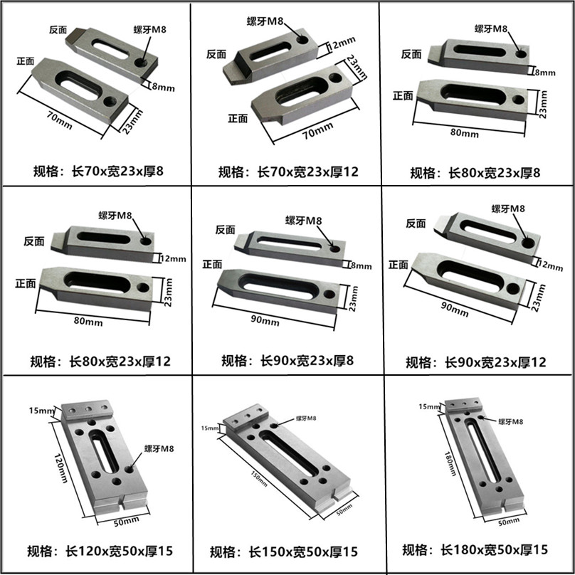 Length 70*width 23*thickness 8 Nut M8 pressure board length 70*width 23*thickness 12 Nut M8 pressure board length 80*width 23*thickness 8 nut M8 pressure board length 80*width 23*
