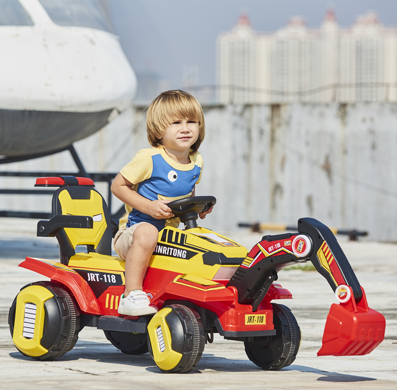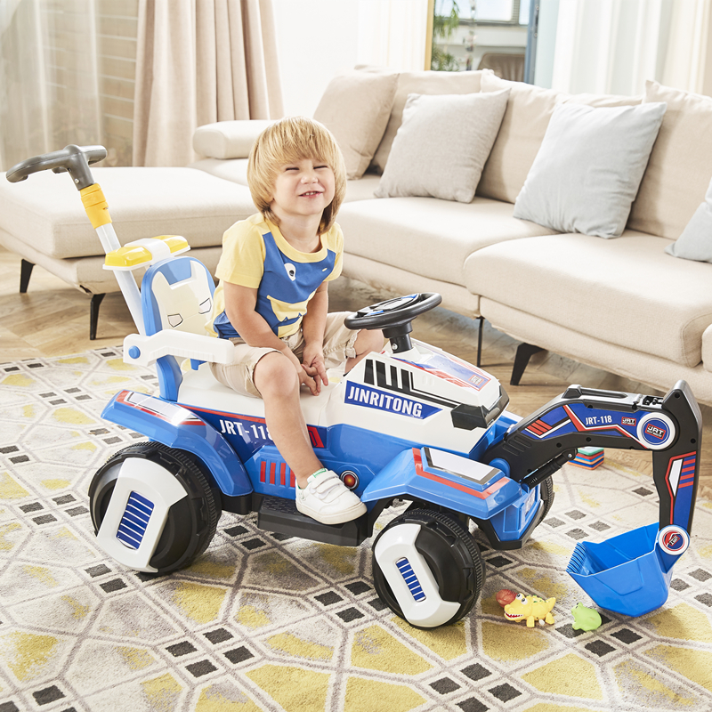 Blue and white excavator (single drive, electric digging arm, multimedia music console, push rod) Blue and white excavator (double drive, electric digging arm, multimedia music console, push rod) Blue and white excavator (double drive