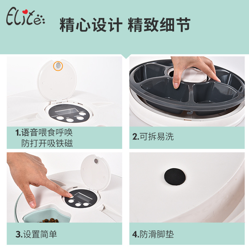 Iri Pet Bowl Six Holes Intelligent Timed Feeding Device Timed Dosing Music Reminder Pet Automatic Feeder