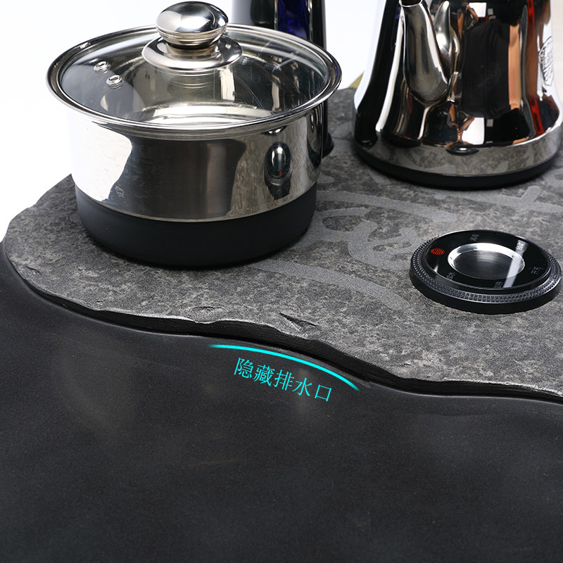 Natural stone automatic household induction cooker tea tray set whole piece black gold stone tea tray Kung Fu drainage tea table tea