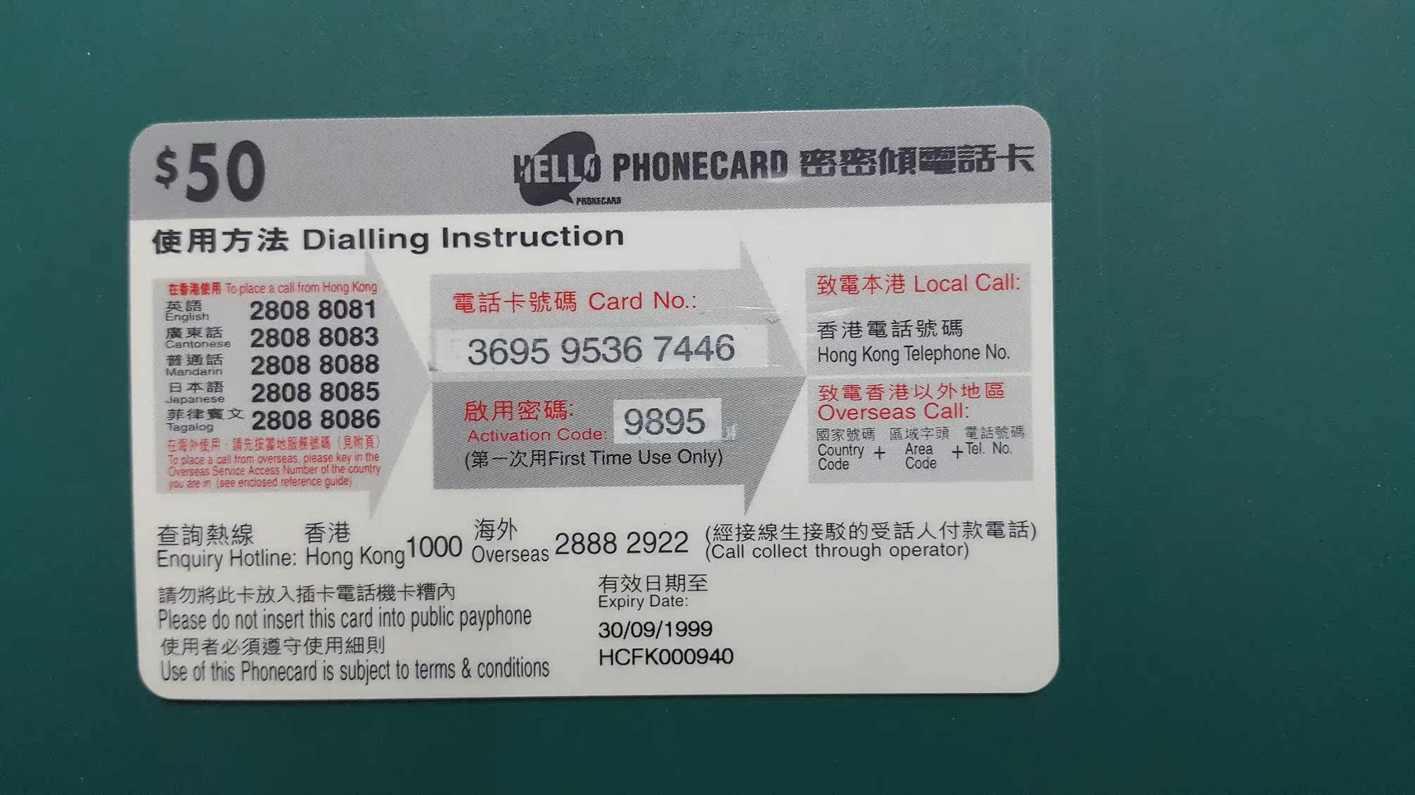 Hong Kong 1999 Hello Kitty Hong Kong Telecom Card