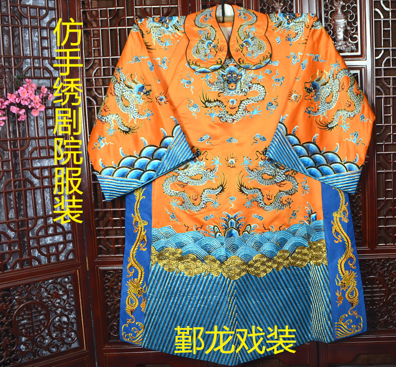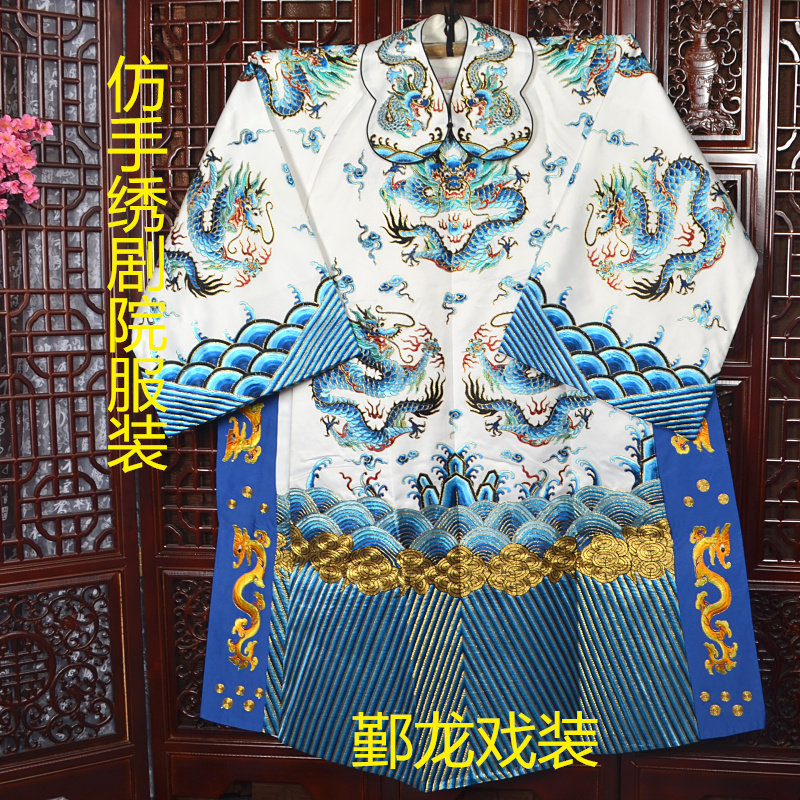 Silver dragon new opera ancient costume Peking opera Henan opera Yue opera Yue opera opera emperor prime minister prince group dragon python soft satin robe