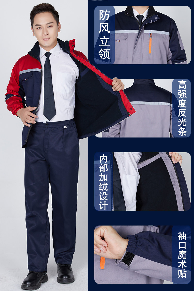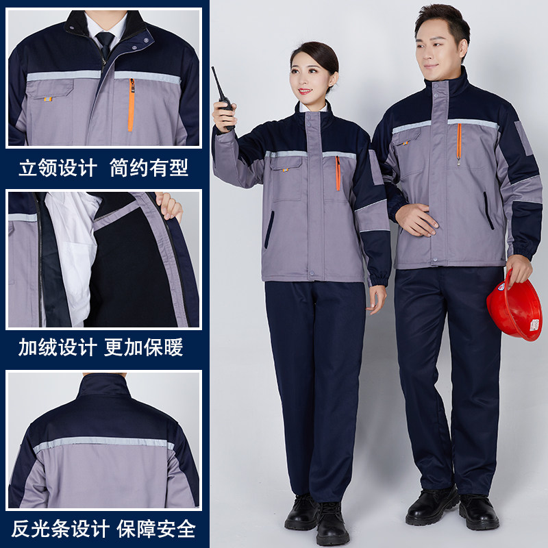 Binshiao work clothes cotton-padded jacket men's plus velvet thickening warm and cold-proof auto repair work clothing labor insurance power engineering cotton-padded jacket