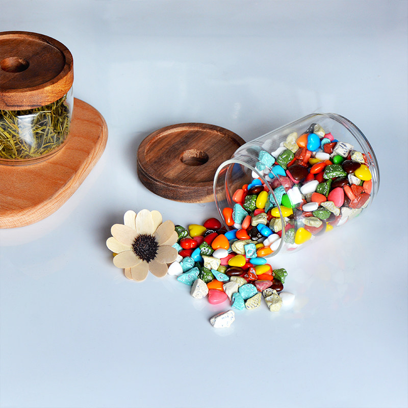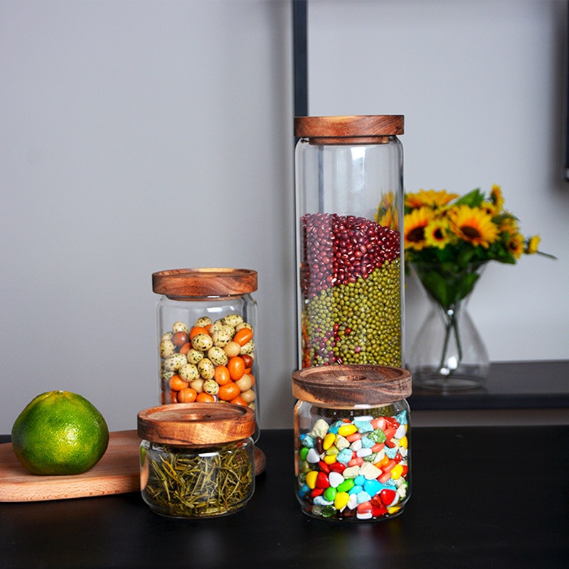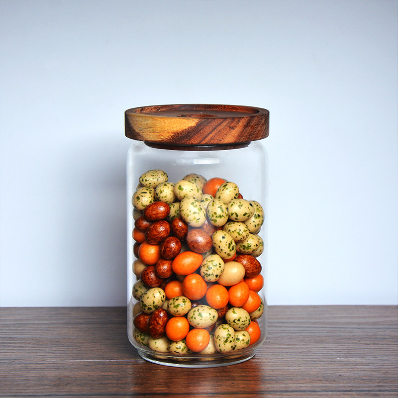 Sealed jar glass tea jar bottle grain storage kitchen household storage box with wooden lid transparent coffee bean jar