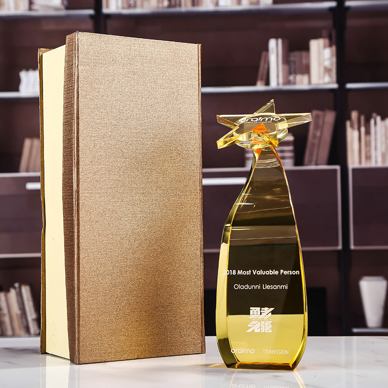 Creative High-end Yellow Crystal Trophy Developed to be the annual trophy of the enterprise annual meeting trophy outstanding staff champion award