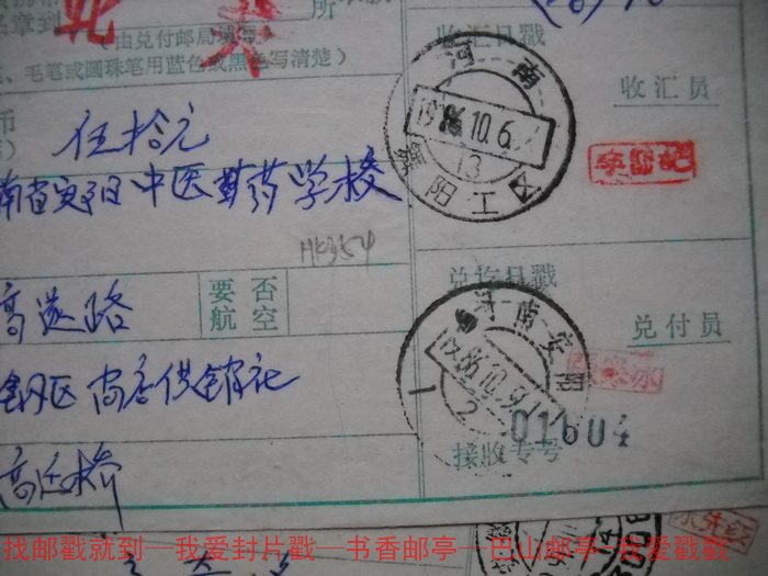 Remitted single cover waist frame date stamp HK354 Henan-Dancing work area Lower crescent 13 86 86 years