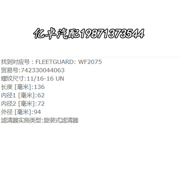 WF2075 3100308 3318318 BW5075 H32WF 24075 WA940 7 cooling water filter