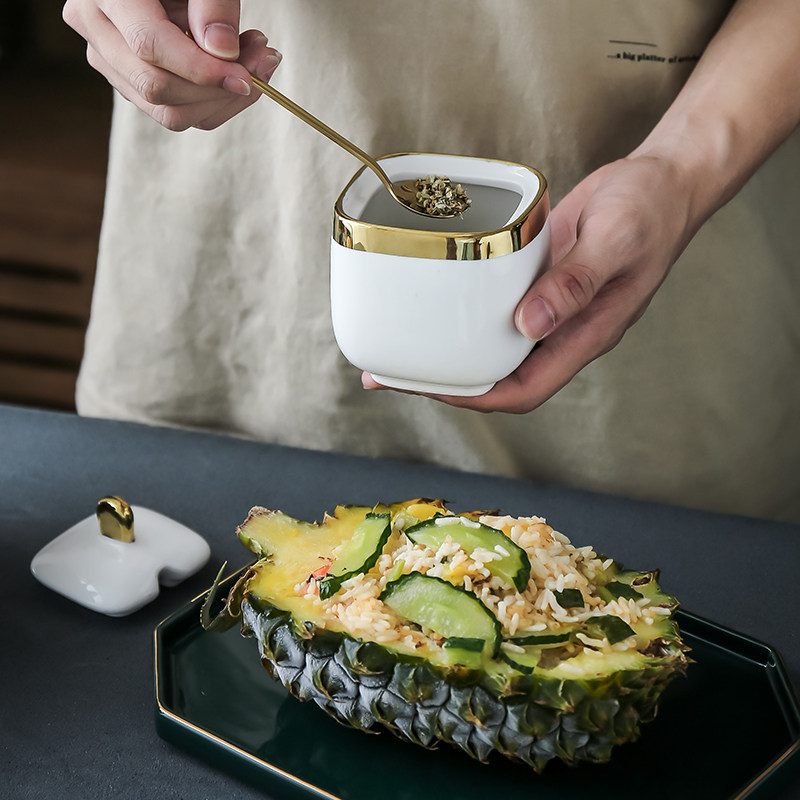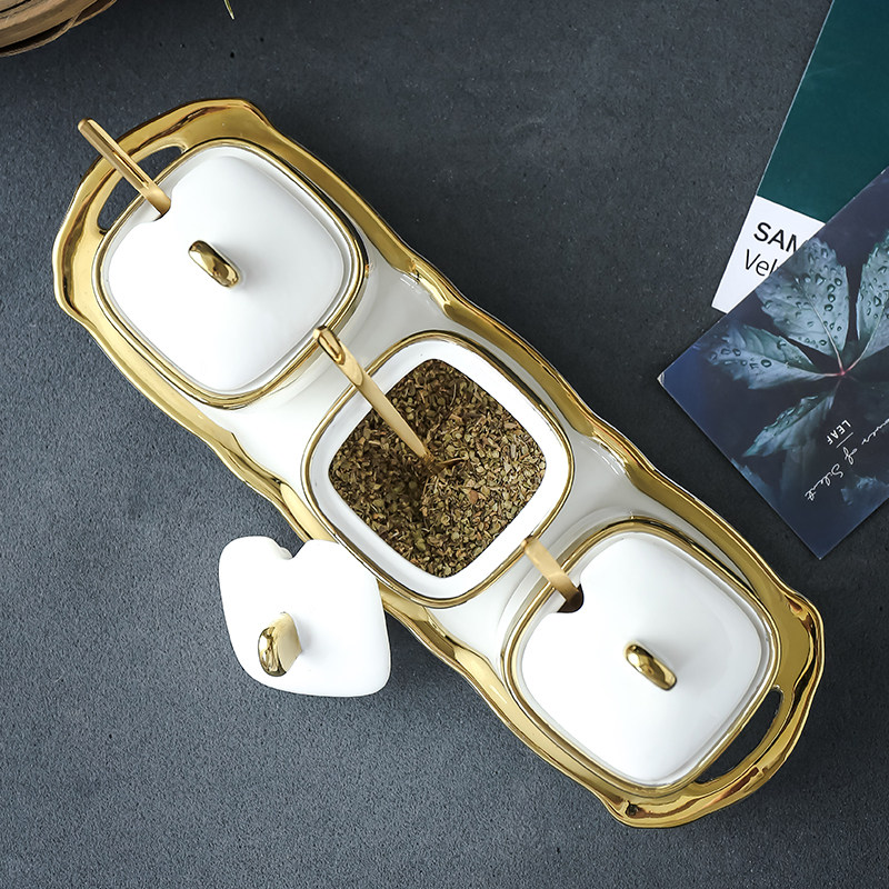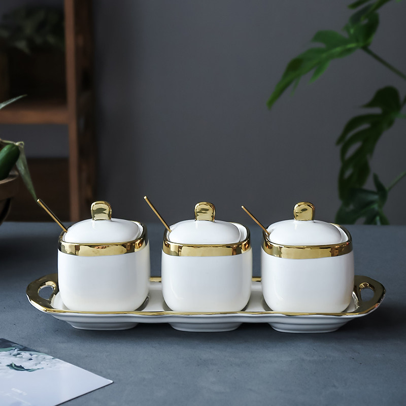 Nordic luxury home storage White gilt ceramic sugar pot salt jar seasoning jar seasoning pot seasoning tea can Storage Set