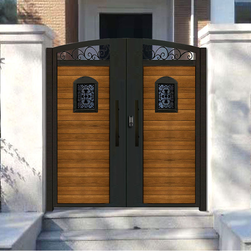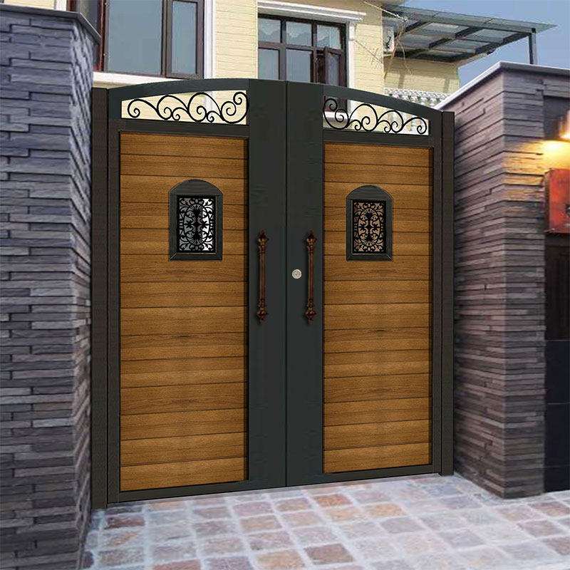 Villa gate new Chinese style wood grain aluminum alloy courtyard door modern wind door middle door country yard door garden door
