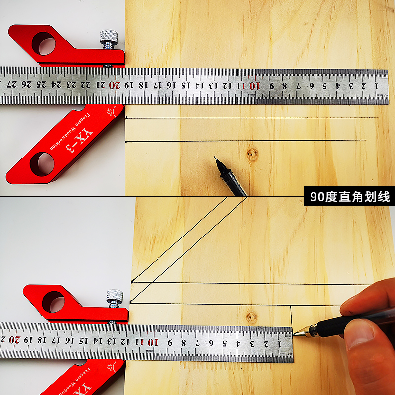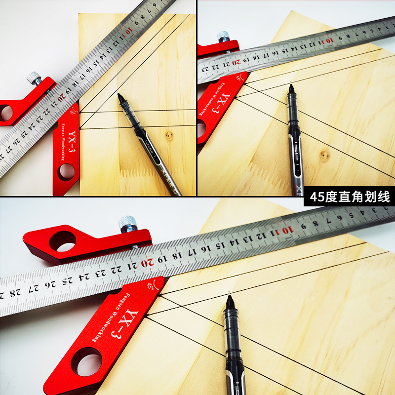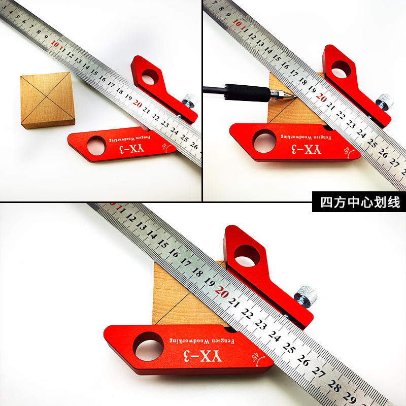 Fengsen Woodworking YX-3 Scribing Aluminum Alloy 45 degrees 90 degrees Scribing Ruler Round Center Right Angle Woodworking Auxiliary Scribing Gauge