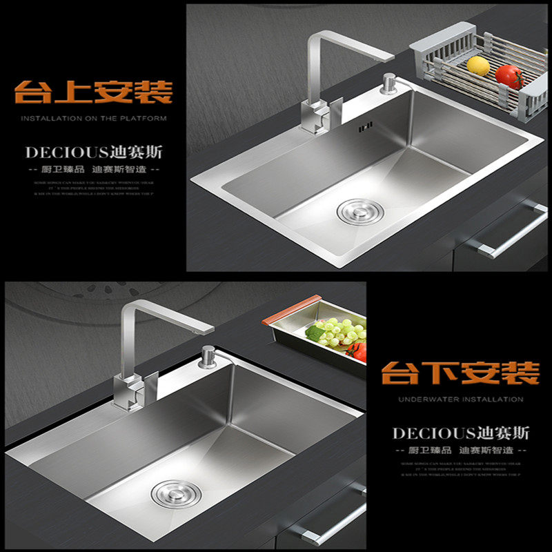 Disaisi 304 stainless steel thickened household kitchen manual sink Single sink wash basin Large sink under the table