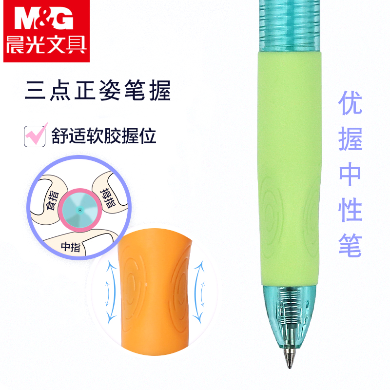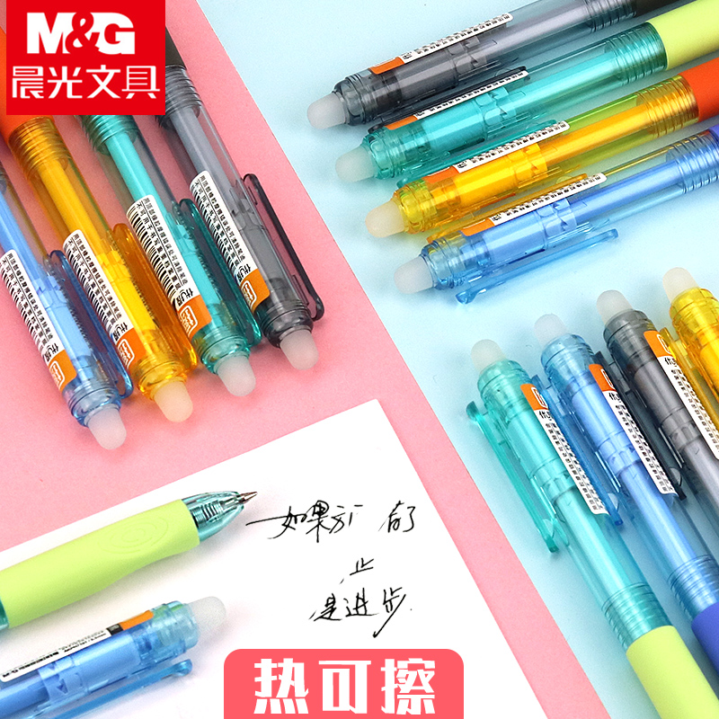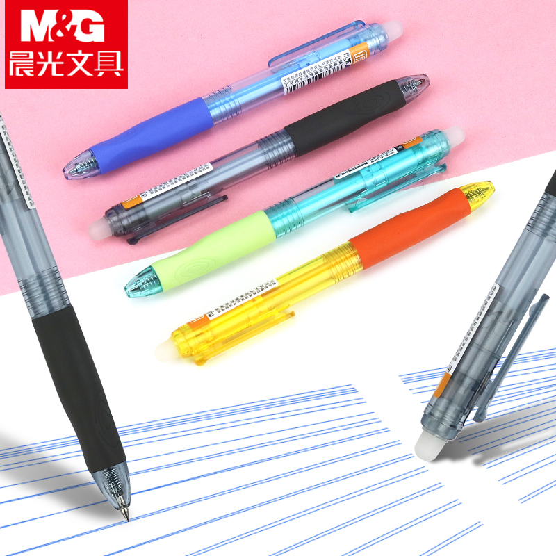 Morning light Thermal erasable pen 3-5 grade in sex pen refill Moprone Friction Grinding magic According to the action Yougrip Erasable Pen 0-38mm Cute Cartoon Male And Female Elementary School Students With 5 0 Black Crystal Blue