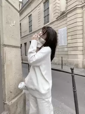 (5 off clearance) one of the few wild and fashionable sweaters in the winter black and white turtleneck V-neck sweater
