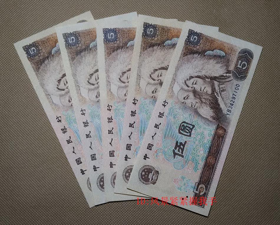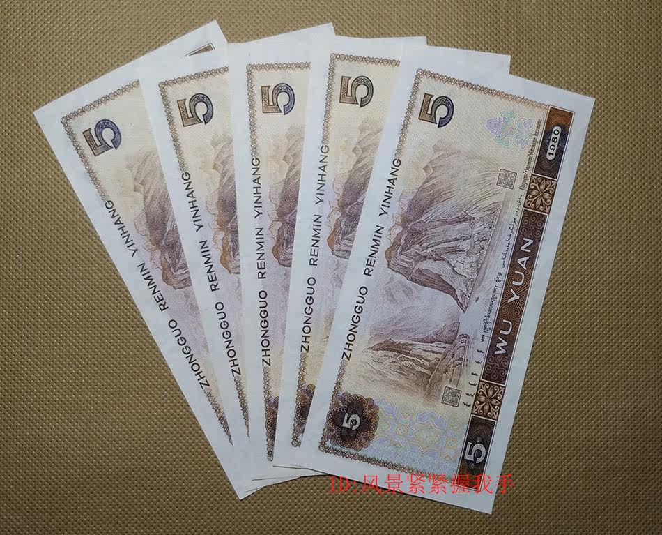 The fourth set of old Renminbi banknotes, 1980, 5 yuan 805 yuan, true coin collection, 5 yuan loose sheet