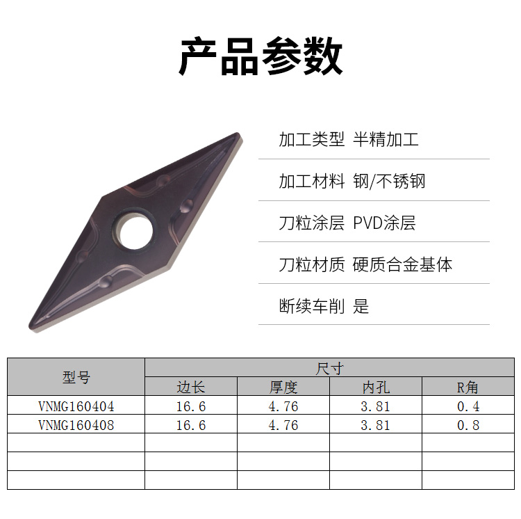 CNC outer round car blade 35 degrees diamond-shaped stainless steel special VNMG160404 08 machine clip knife grain aluminum