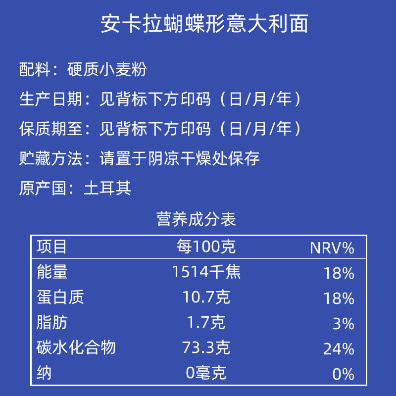 Original imported Ankara spaghetti 500g Butterfly type children's cute quick-cooked pasta without sauce spaghetti