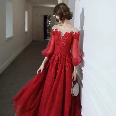 Wine red toast, bride 2020 new long version of temperament dress female evening party wedding dress can usually wear spring and summer