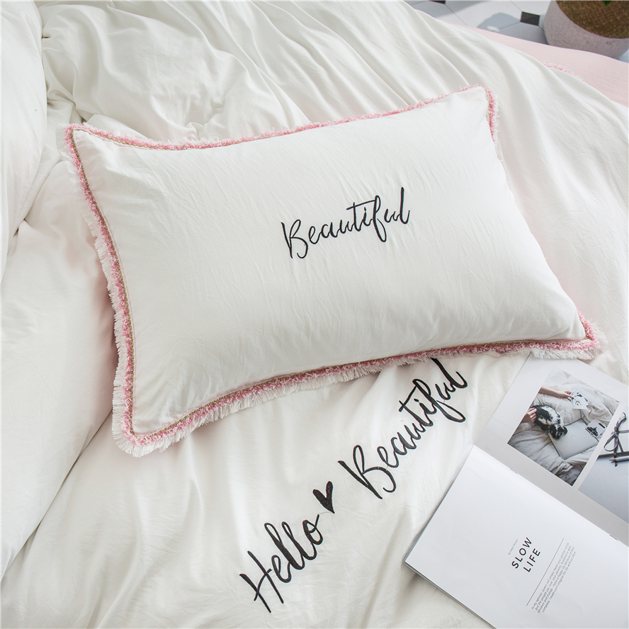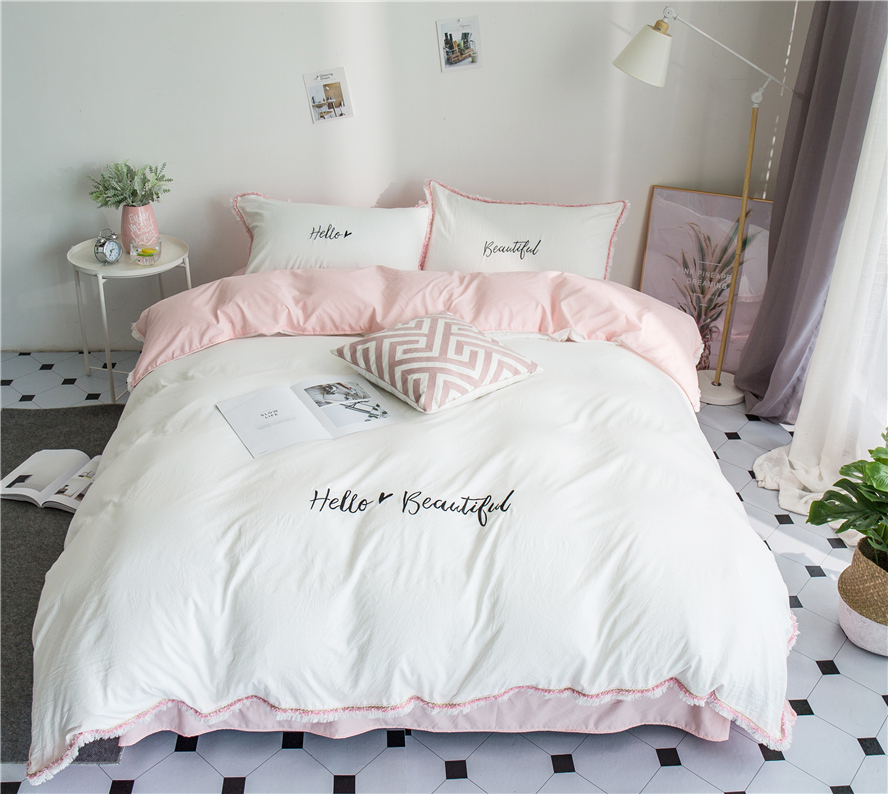 Washed cotton four-piece set thickened quilt quilt quilt quilt cover Girl heart princess ins wind bed cover Bedding