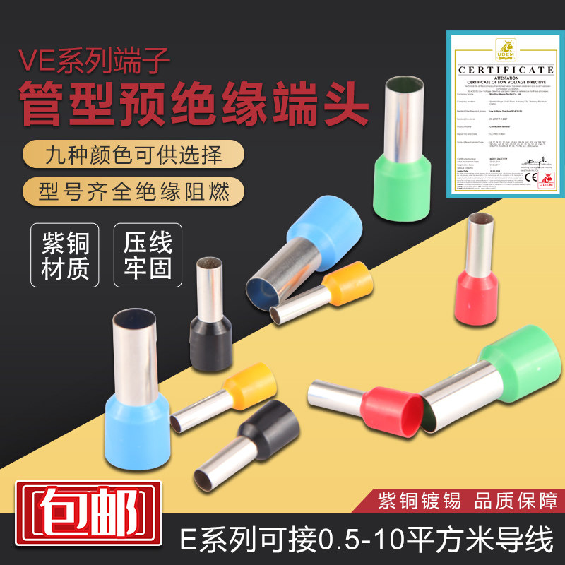 Copper tube VE0508 E1508 E1008 pre-insulated plug - in European cold press terminal copper wire ear nose