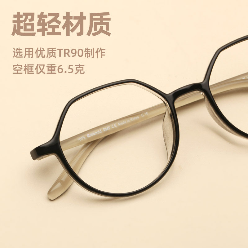 Anti-blue light anti-radiation polygonal glasses frame female net red ultra-light eye protection eyes flat light large frame can be equipped with degrees