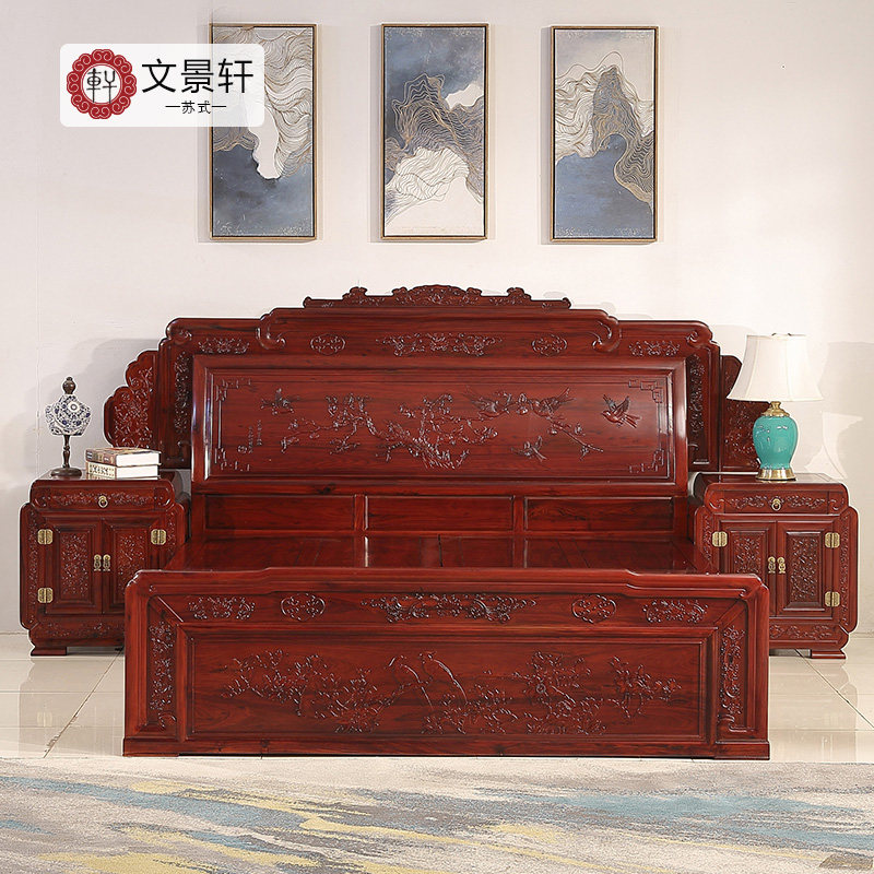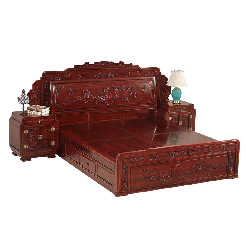 1 8 m red wood double bed African acid branches wood light lavish furniture Chinese solid wood bed Ming and Qing imitation ancient master bedroom with large bed