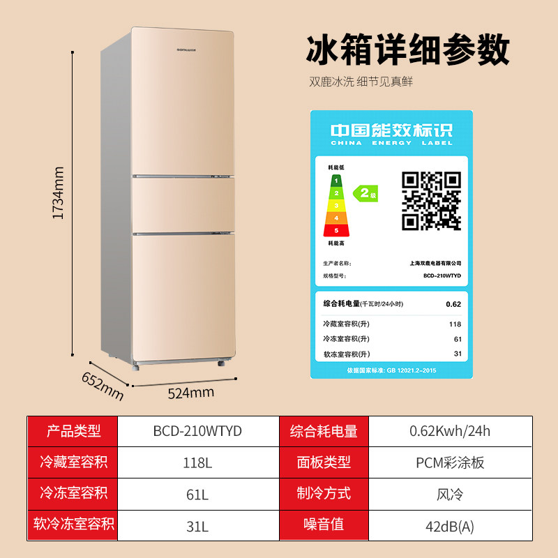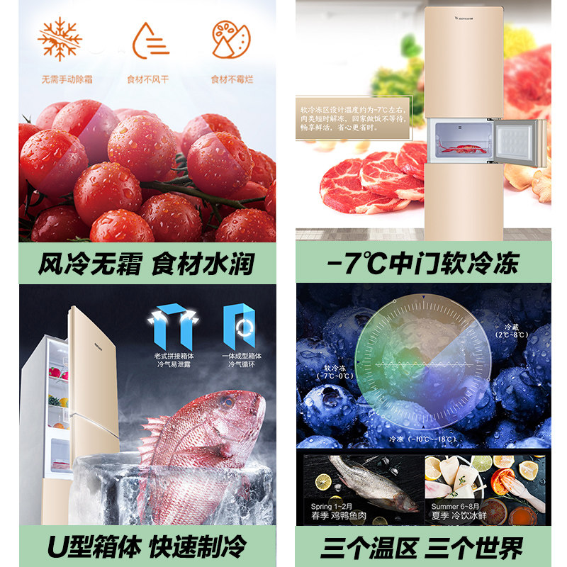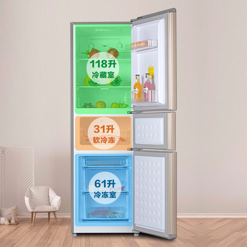Shuanglu 210 liters three-door refrigerator air-cooled frost-free household small energy-saving silent rental two-door three-door type
