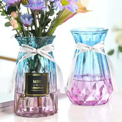 (Two-piece set)European-style simple transparent color hydroponic bamboo lily dried flower golden Ge glass vase decoration