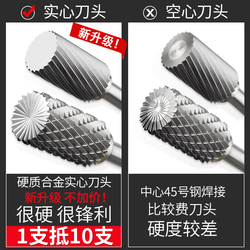 Carbide rotary filing knife tungsten steel grinding head metal grinding head milling head milling cutter head 6mm single sink electric drill inner grinding head