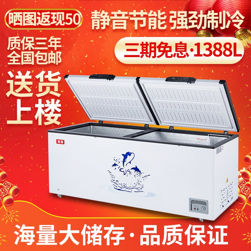 Horizontal single temperature copper tube freezer freezer commercial large capacity double door silent energy-saving frozen meat cabinet frozen refrigerated home