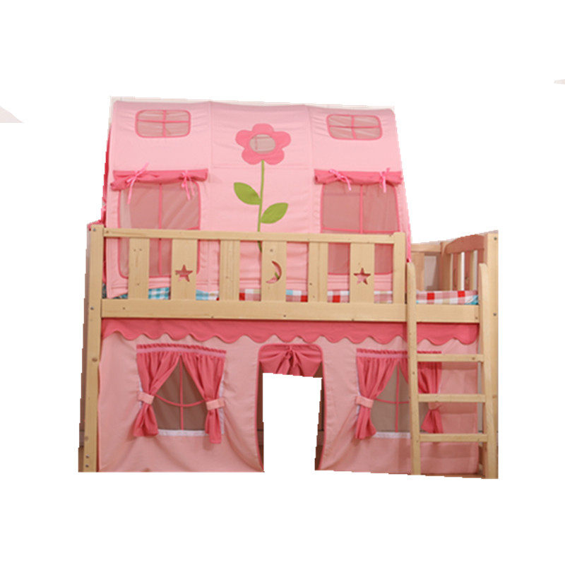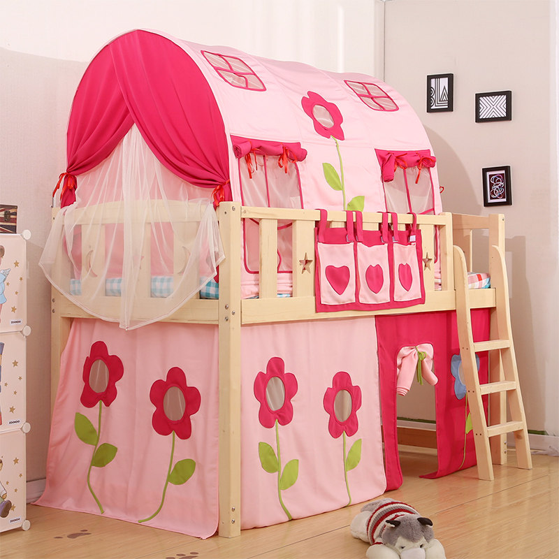 Children's half-height bed Solid wood bed with fence Medium-high bed Tent bed curtain Small apartment type Student bed Multi-function slide bed