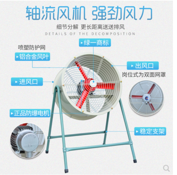 Chemical plant petrol station special environment explosion-proof axial flow fan exhaust fan stationary mobile ventilation exhaust fan