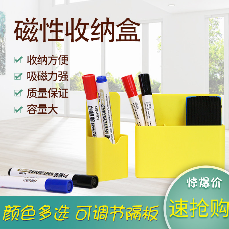 Magnetic white board pen case with absorbing sticking wall blackboard green plate chalk pen holder multifunction stationery suction magnetic containing box bag