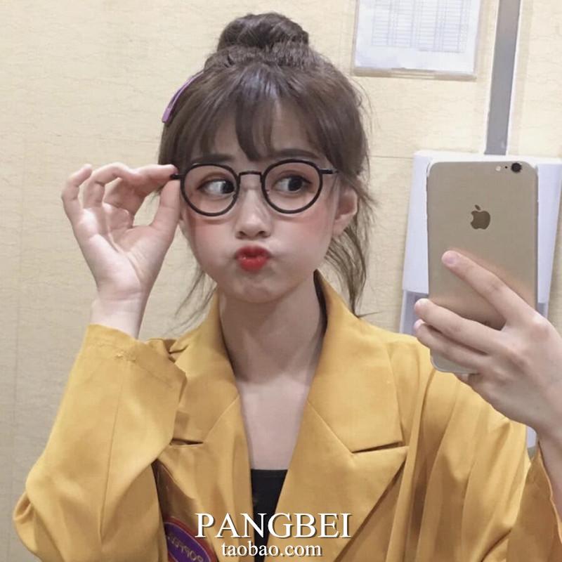Korean Version Tide Small Frame Cute Round Small Red Book Eyelachnet Reddits small face vegan black frame glasses female myopia