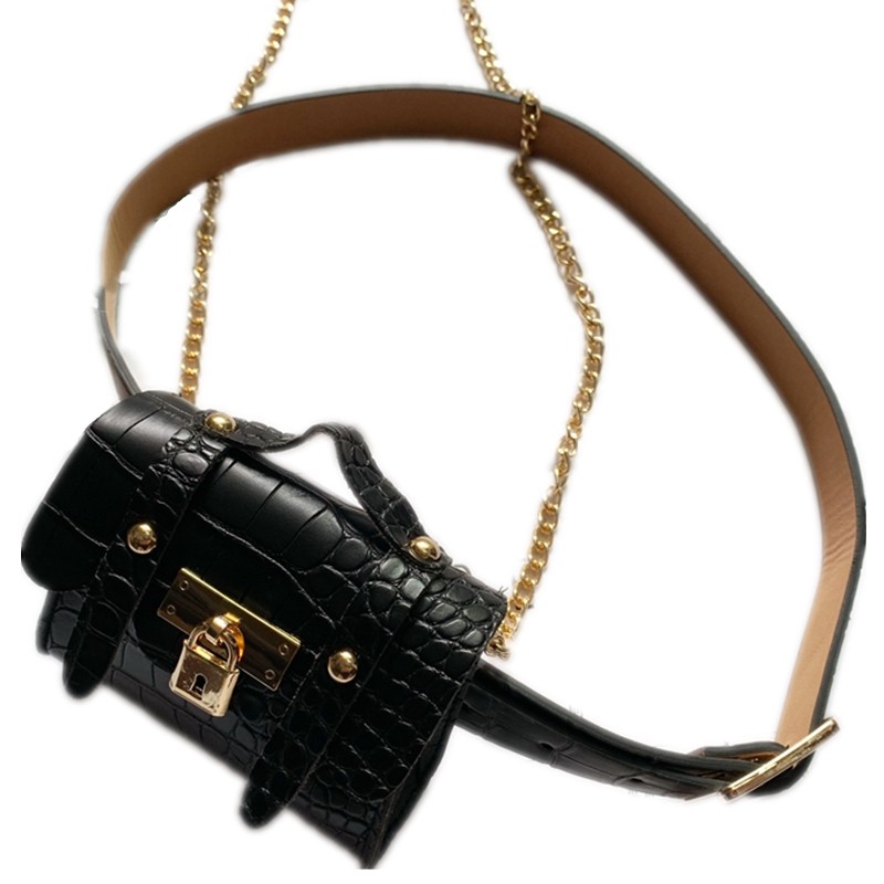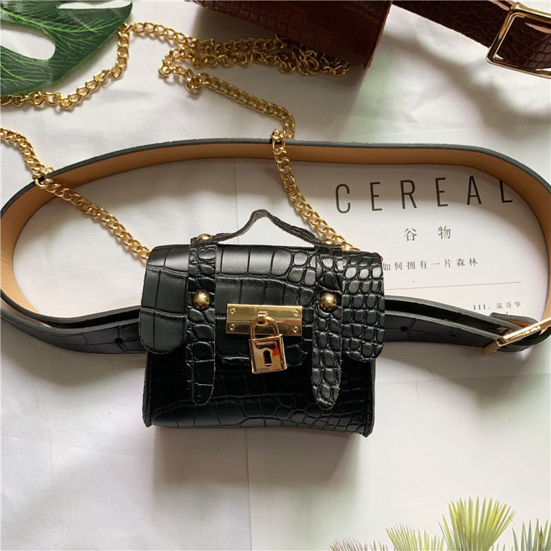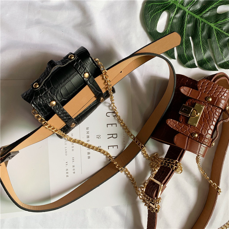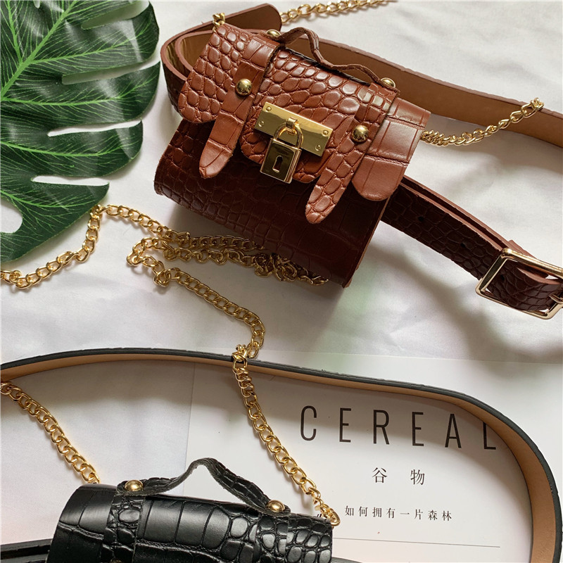 New crocodile pattern small bag women's fashion concave shape chain decorative belt Wild oblique cross dual-use belt bag