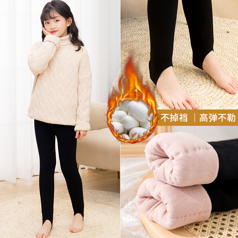 Three layers of extra thick girls plus plus thick leggings northern winter silk cotton children's warm cotton pants step foot