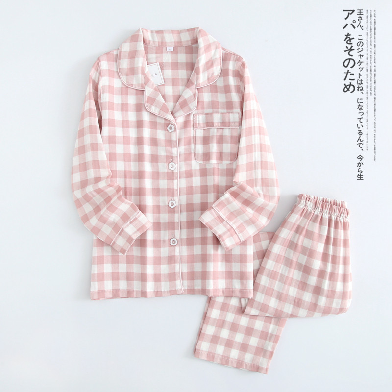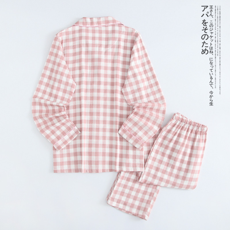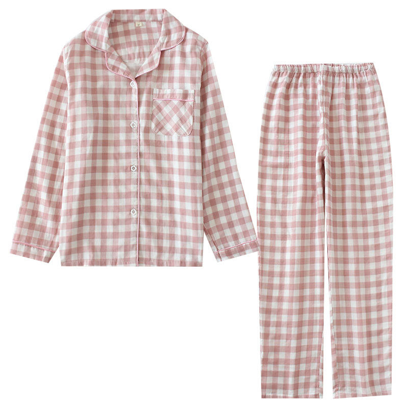 Day Ensemble Classic Plaid Lovers Sleepwear Spring Autumn Season Pure Cotton Double Layer Gauze Men's And Women's Family Residence Long-sleeved Pants Cardiovert