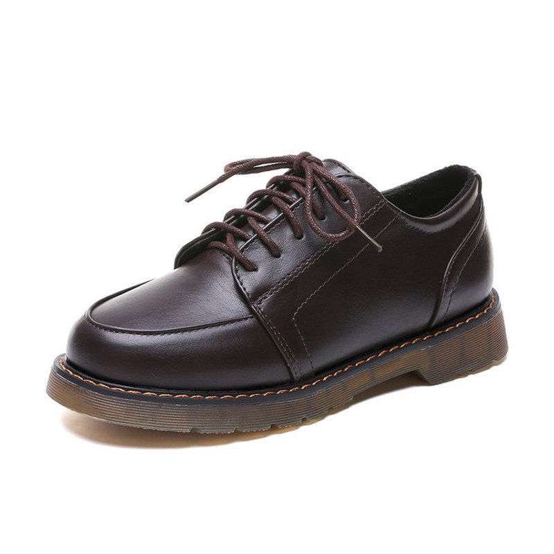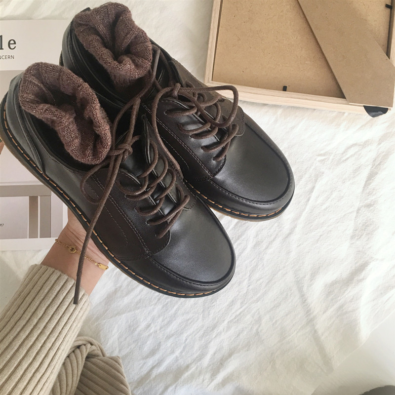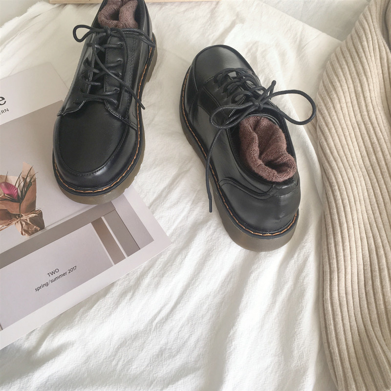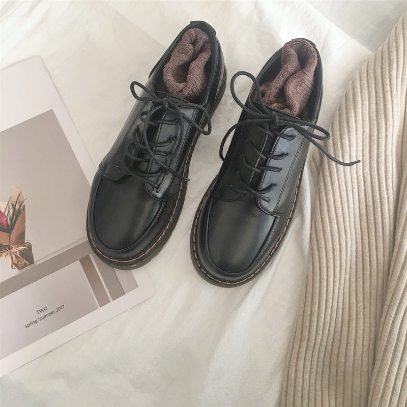 Black retro round toe small leather shoes women's British style Japanese students casual Oxford shoes college brogue shoes single shoes