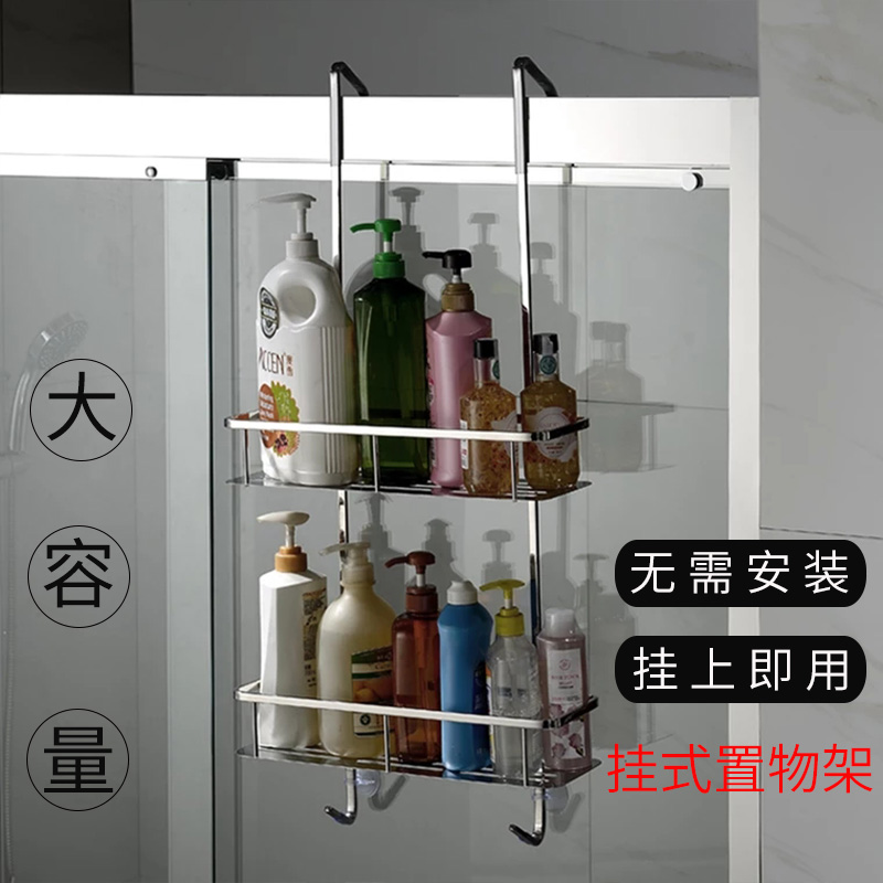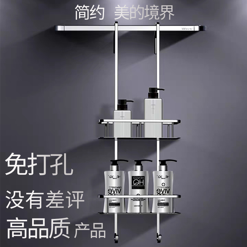 Shower room hanging rack bathroom hanging basket bathroom storage rack storage wall hanging basket free punching 304 stainless steel