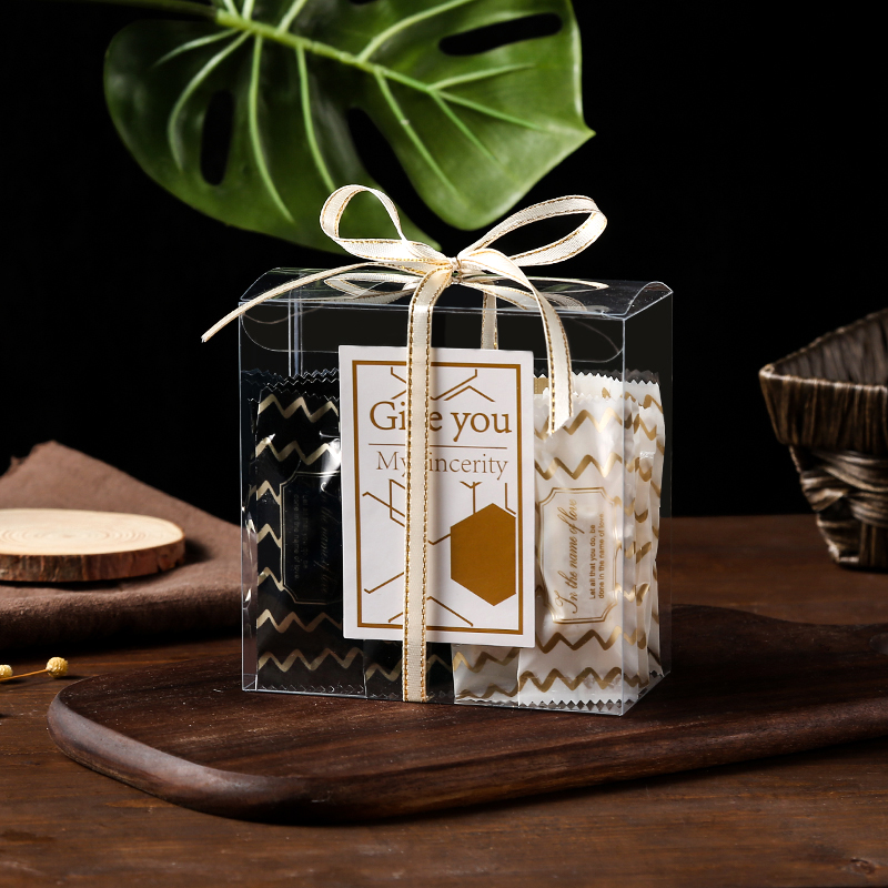 Transparent box (10) rectangular transparent box (10) black ribbon (1 roll) golden ribbon (1 roll) elk antlers sticker (1 sheet of 10) fresh green stickers
