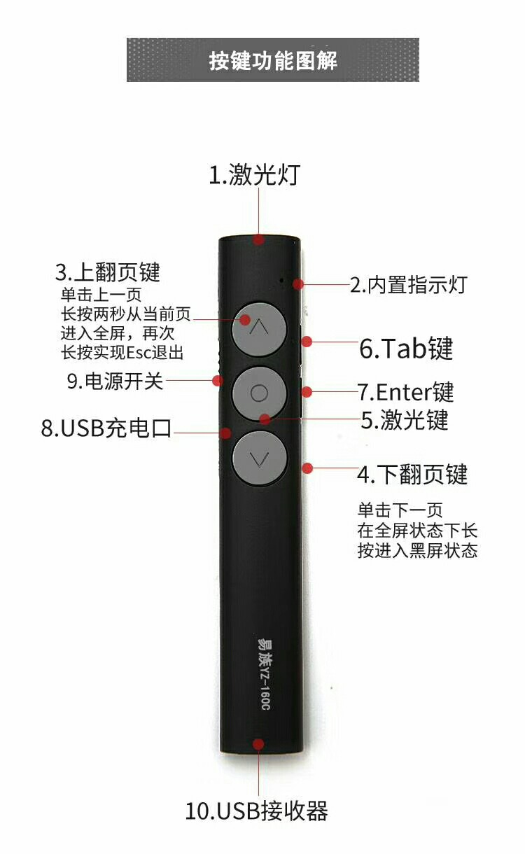 Yizu YZ-160C green PPT projection page turning pen LCD TV LCD screen LED screen indication clear page turning