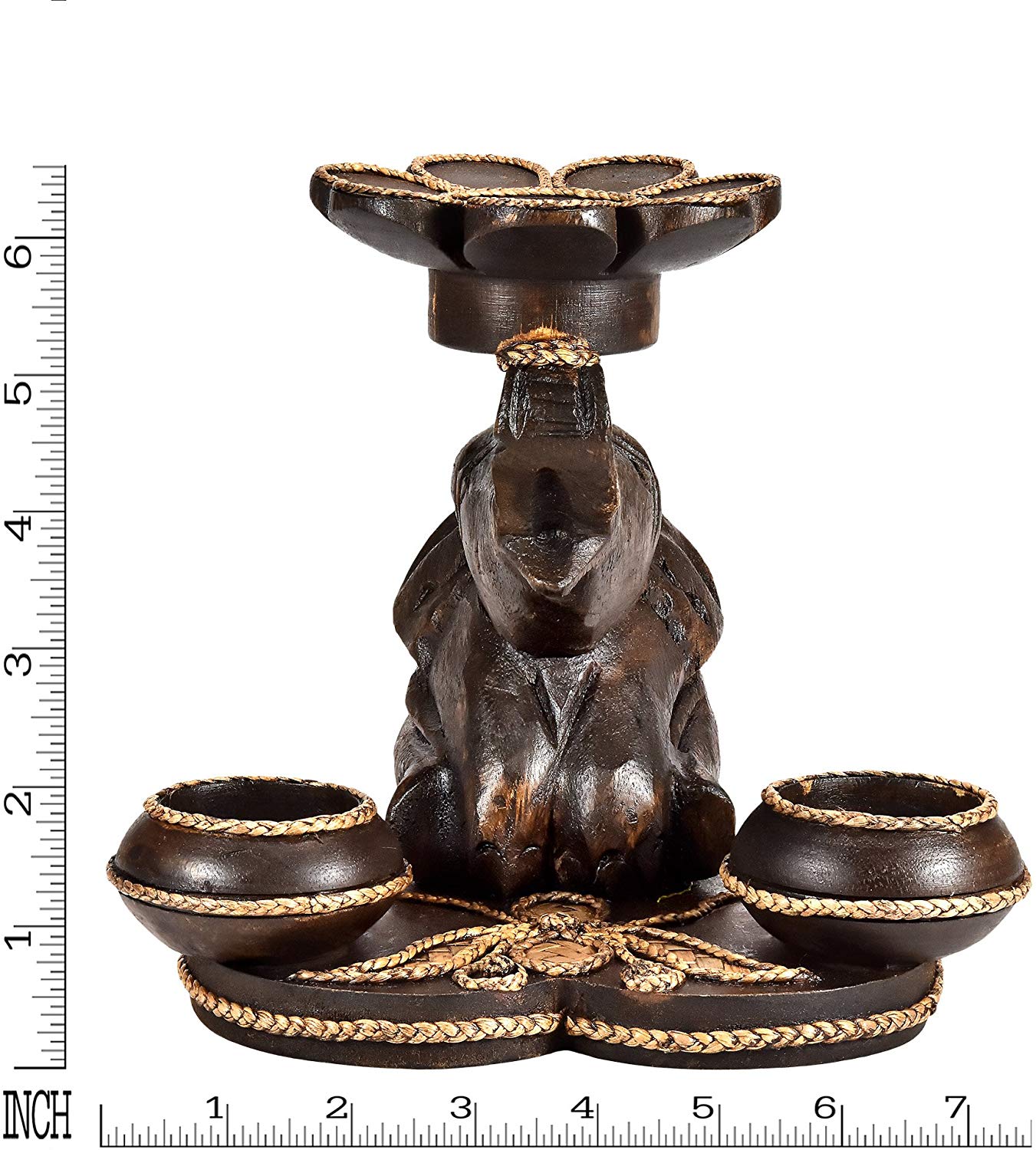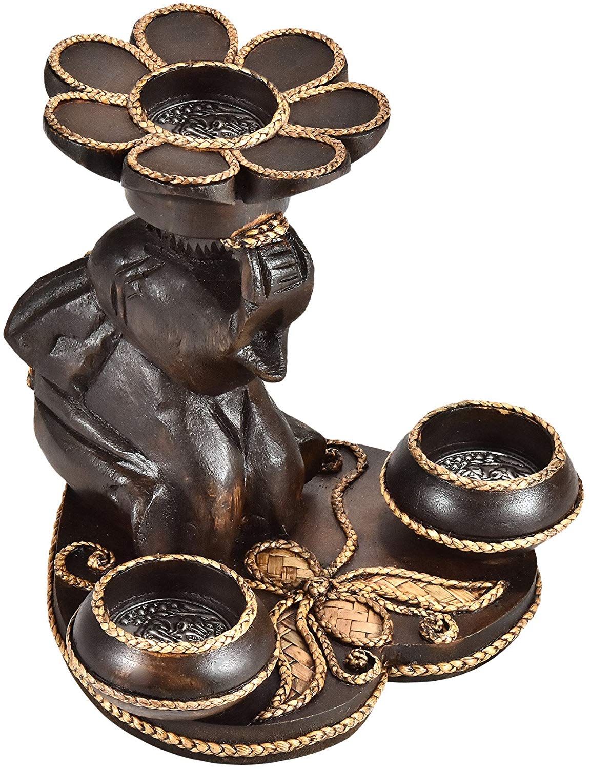 American AeraVida Hand Carved Elephant Flowers Bottom With Three Candle Holder Hem Decorative Artwork