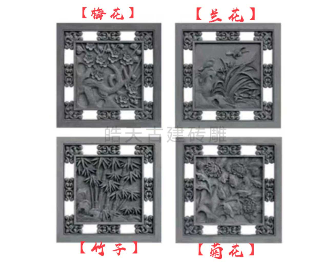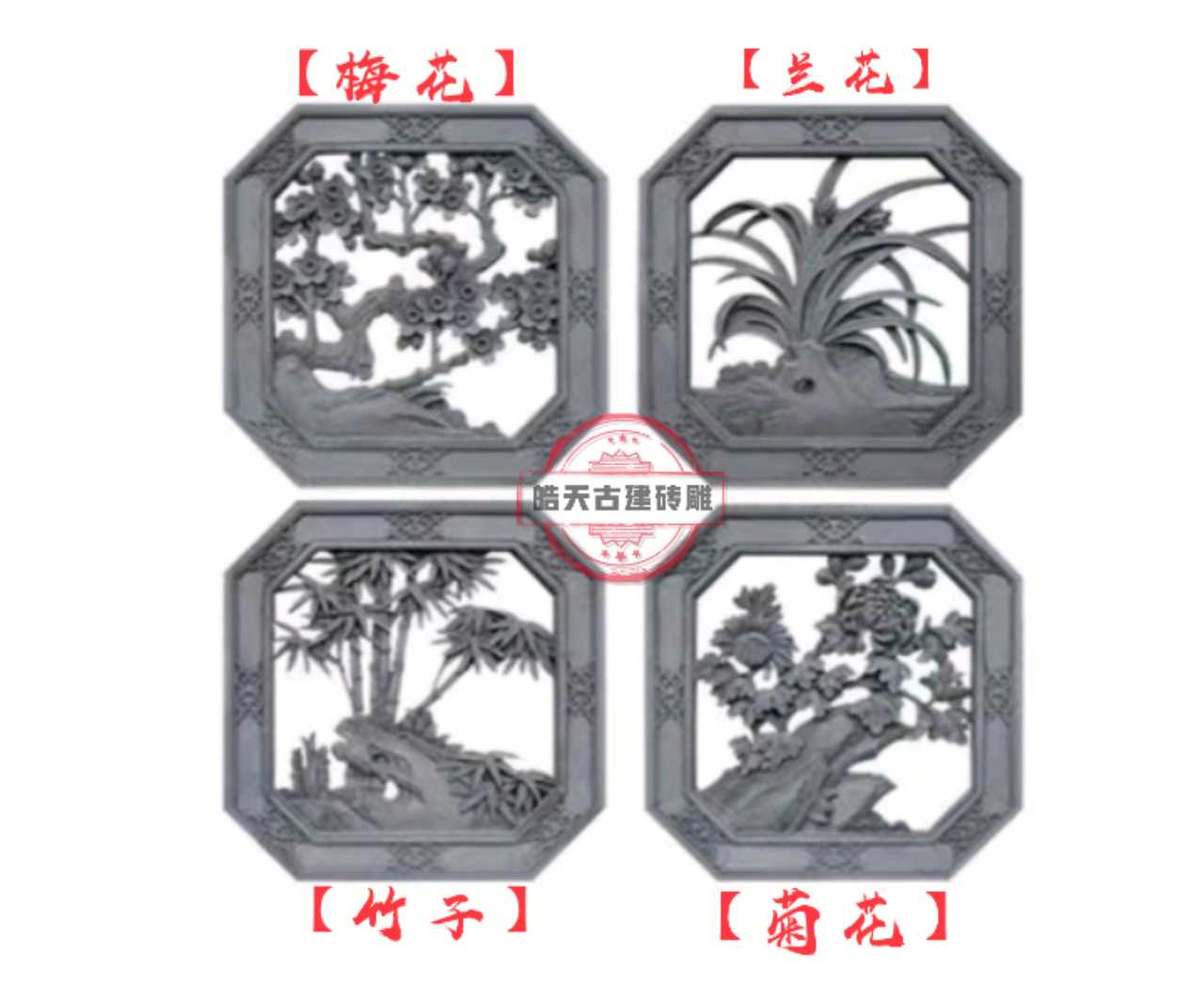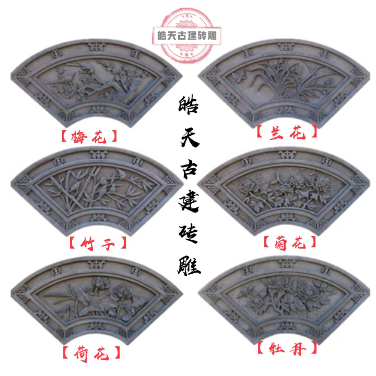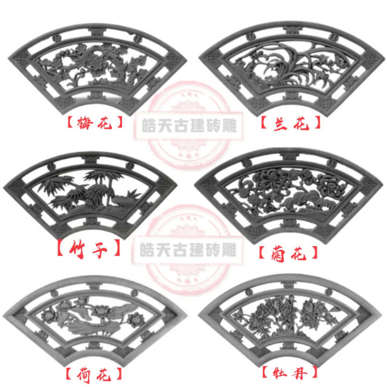 Hao Tian Imitation Ancient Hollowed-out Brick Carved Window Flower Sector Melan Bamboo Chrysanthemum Chinese Style Courtyard Decoration Emblems Wall Flower Window Pendant