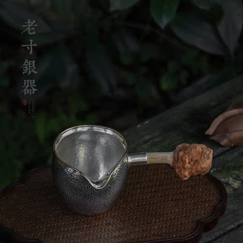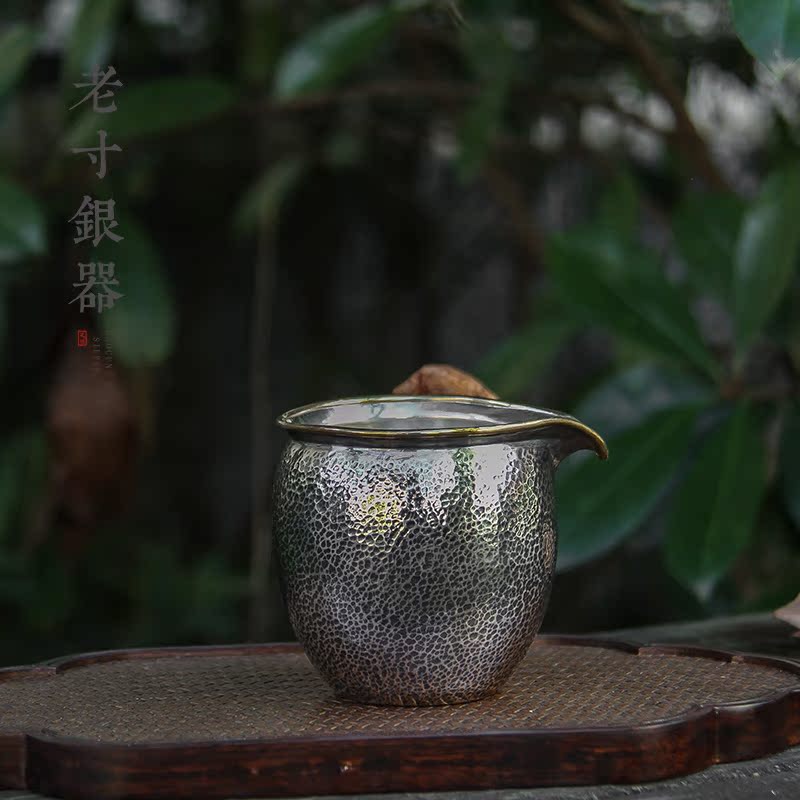 Sterling silver fair cup tea leak set S999 Sterling silver handmade hammer pattern fair cup tea sea Kung Fu tea with tea separator
