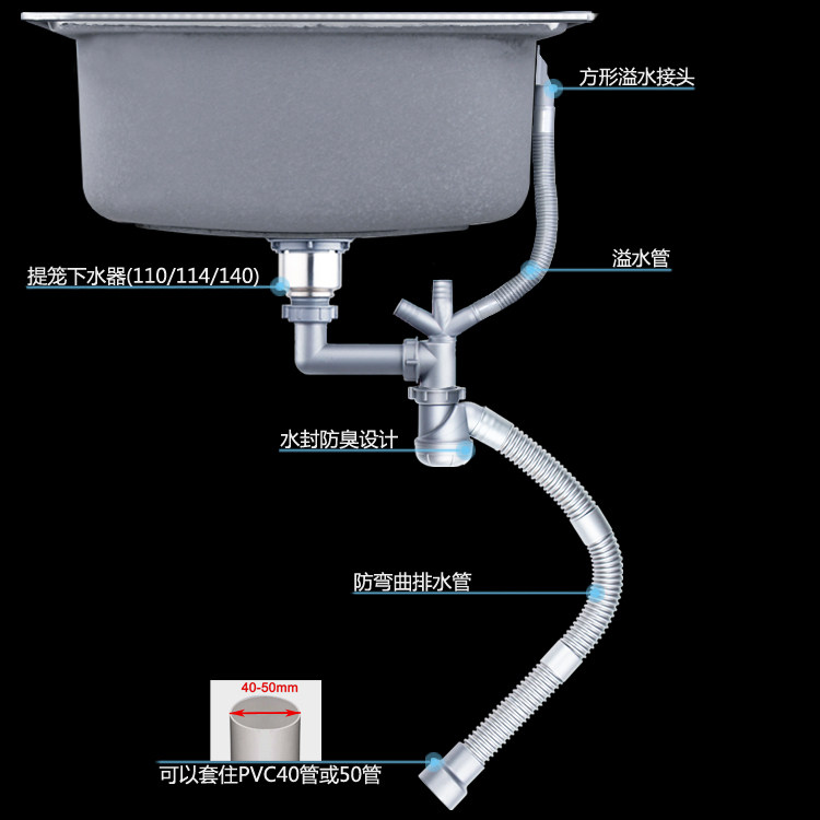 Water seal Rear single sink sewer pipe no overflow seal Rear single sink sewer pipe square overflow seal Rear single sink sewer pipe round overflow 110 drainer Water seal Rear single sink pipe no overflow 110 drainer